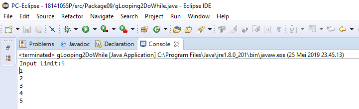 //Perintah DO WHILE = seleksi dilakukan diakhir